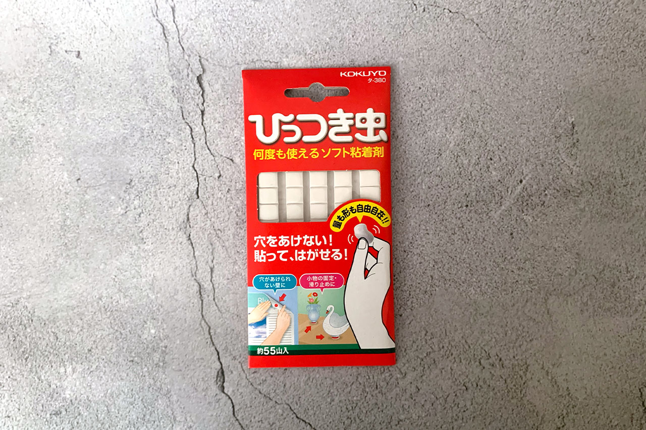 しっかりくっつき、剥がすのも簡単で、壁に傷もつかないので、「くっつける」時に便利です。